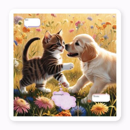 可愛い子猫と子犬。メッセージが記入出来るようにしました。プレゼントなどのラッピングにも使えそうです。